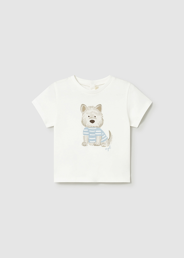 Tricou cu maneca scurta - realizat din bumbac moale si placut la atingere, ideal pentru pielea sensibila a celor mici. Modelul este decorat cu un imprimeu adorabil de catelus care adauga un plus de veselie tinutei.